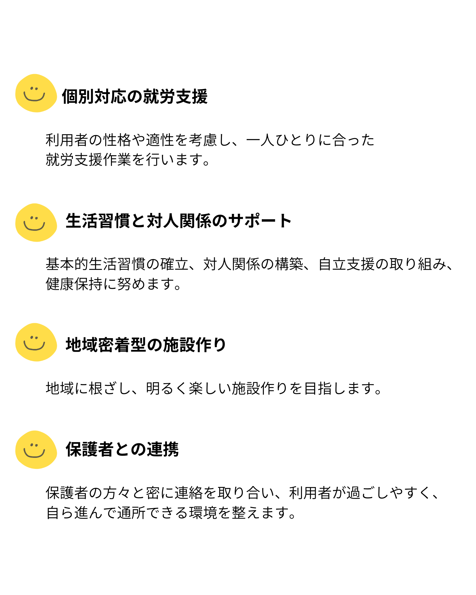 利用者の性格や適性を考慮し、一人ひとりに合った就労支援作業を行います。